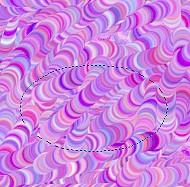 1. Open a new canvas 400x400. With the Particle tool: preset = particle string, color of your chose, fill all canvas. You can also use only one color or gradient. With selection tool: shape=elipse, soft edge=50, draw a elipse.